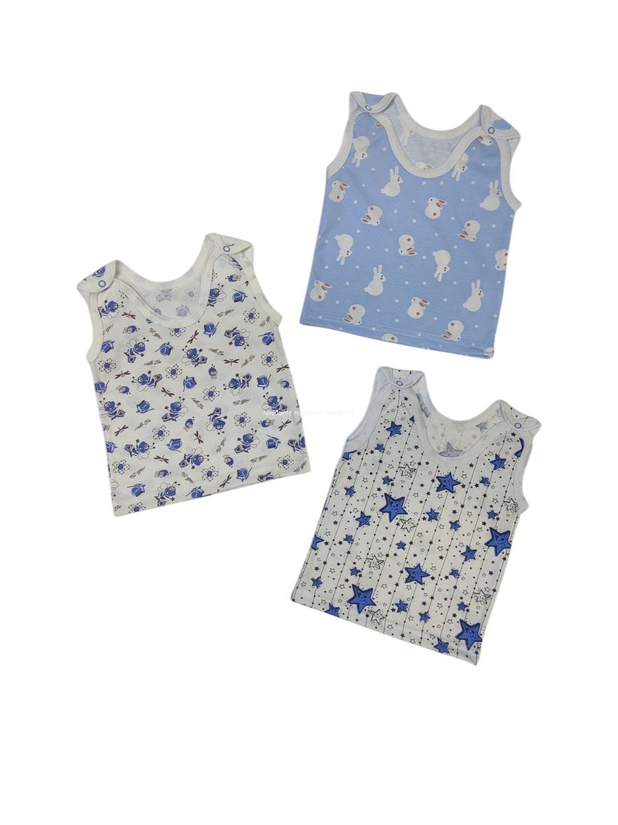 Маечка детская выполнена из 100% хлопка, с кнопочкой на каждом плече.