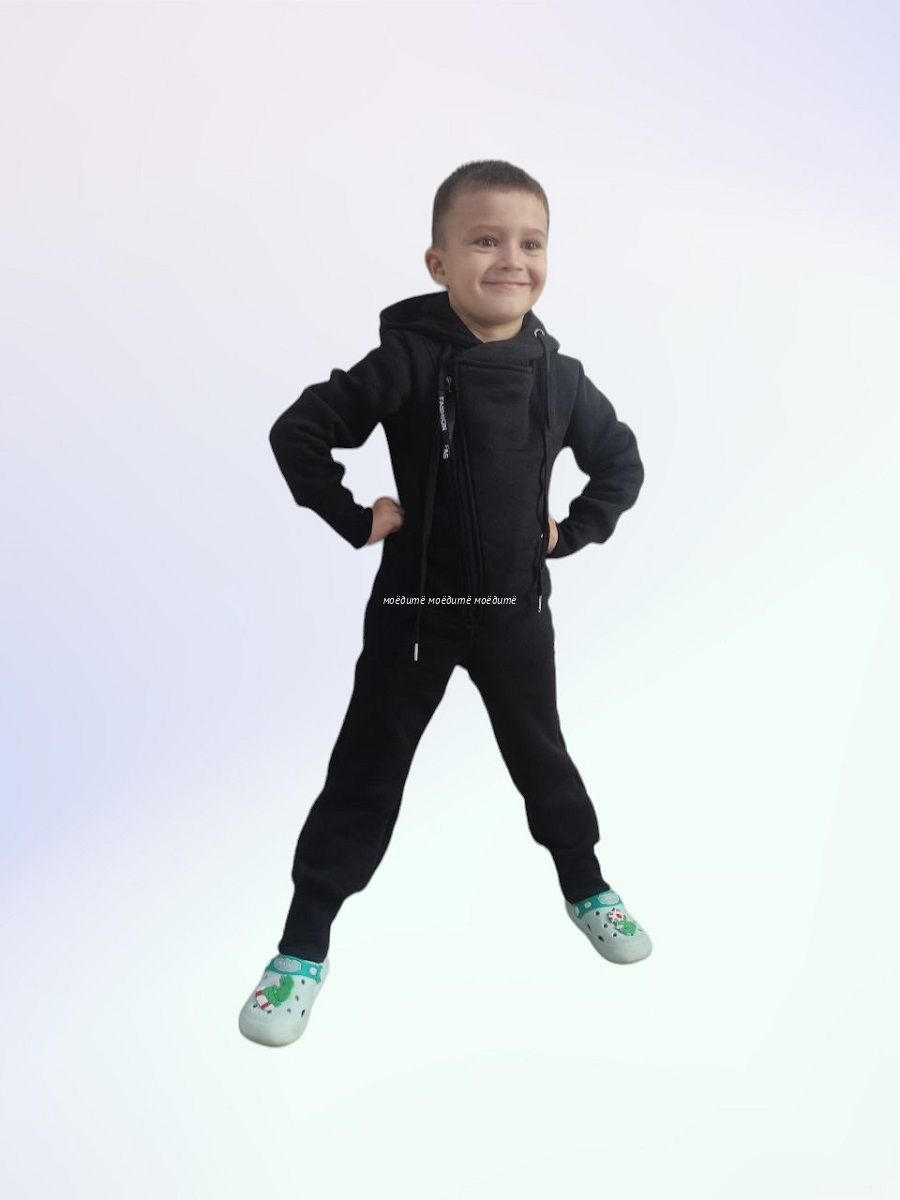 Комбинезон с капюшоном на подкладке, с открытыми ножками, рукавчики на манжете, спереди на косой молнии.